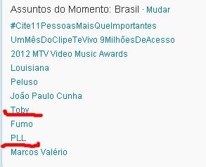 Toby ainda se encontra nos TT's do Brasil( que isso em Tobias)e PLL também!Fãs Brasileiros os melhores (: